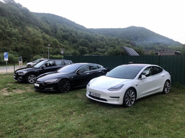 The final parking and charging spot of the trip: a camping site 20km north of the Nürburgring in the Eifel mountains in western Germany. Surprisingly reminiscent of the Alps. Another Tesla joined us there, a somewhat rare S P85+ from Norway, among many other people and cars - but that was a different event altogether.Overall verdict on the Model 3 on the roadtrip: awesome. Amazingly fun on the mountain passes and other twisties, relaxing on AP during “transit” driving, comfortable and decently roomy - what more do you need.